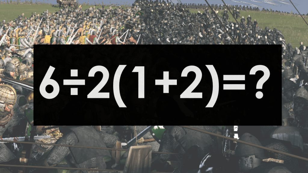 Jika ia ditulis (6/2)(1+2), maka jelas jawapannya adalah 3×3=9. Kerana nombor dalam kurungan itu diselesaikan dahulu.