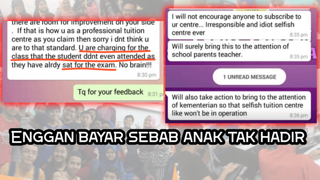 Mesej tersebut dibalas dengan baik oleh pengurus pusat tuisyen, dengan mengatakan ‘terima kasih atas maklum balas anda‘.