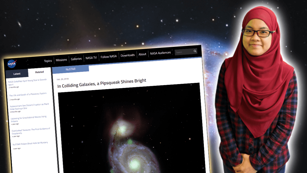Artikel NASA yang bertajuk ‘In Colliding Galaxies, a Pipsqueak Shines Bright‘ itu mempersembahkan dapatan terbaru analisis X – ray bertenaga tinggi menggunakan teleskop NuSTAR.