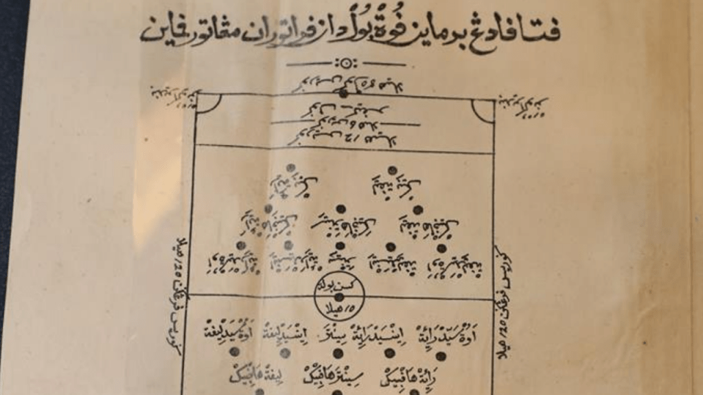 Panduan bola sepak tahun 1895 itu bertajuk ‘Peta Padang Bermain Futbol dan Peraturan Mengatur Pemain’.