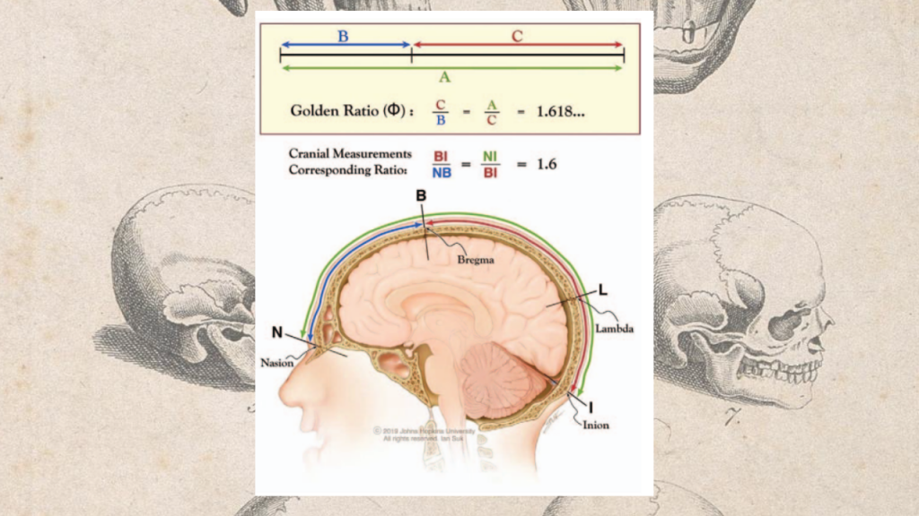 Hasilnya, didapati bahawa pada tengkorak manusia, nisbah kedua – dua menghasilkan jumlah 1.6 iaitu hampir dengan nisbah emas 1.618. Bagaimanapun, spesis lain tidak menghasilkan keputusan demikian.