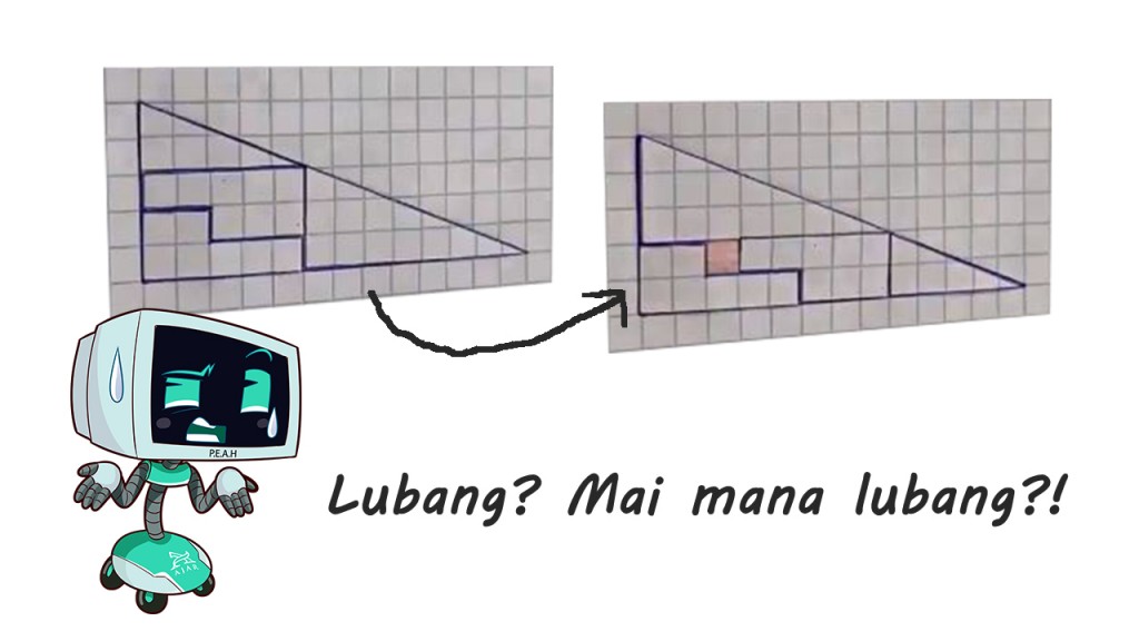 Jadi, apa sebenarnya yang berlaku? Macam mana asal ruang segi tiga itu dapat dipenuhi, kemudian terkurang satu kawasan apabila disusun kali kedua? Magik apakah ini?