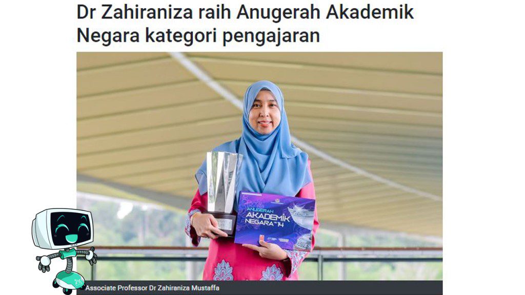 Terbaru, Bernama telah melaporkan kejayaan Prof Madya Dr Zahiraniza Mustaffa dari Jabatan Kejuruteraan Awam dan Alam Sekitar, Universiti Teknologi Petronas (UTP) yang meraih Anugerah Akademik Negara (AAN) bagi Kategori Pengajaran (Kelompok Kejuruteraan) oleh Kementerian Pengajian Tinggi (KPT). Anugerah ini merupakan pengiktirafan dan penghormatan tertinggi Negara kepada cendekiawan Malaysia yang komited memberi sumbangan besar dalam penemuan-penemuan serta pembangunan ilmu untuk Negara.
