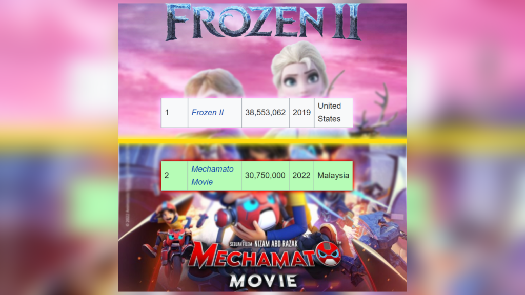Kini, Mechamato sikit lagi hendak MENUMBANGKAN filem animasi antarabangsa paling tinggi kutipan di panggung wayang negara, Frozen 2!